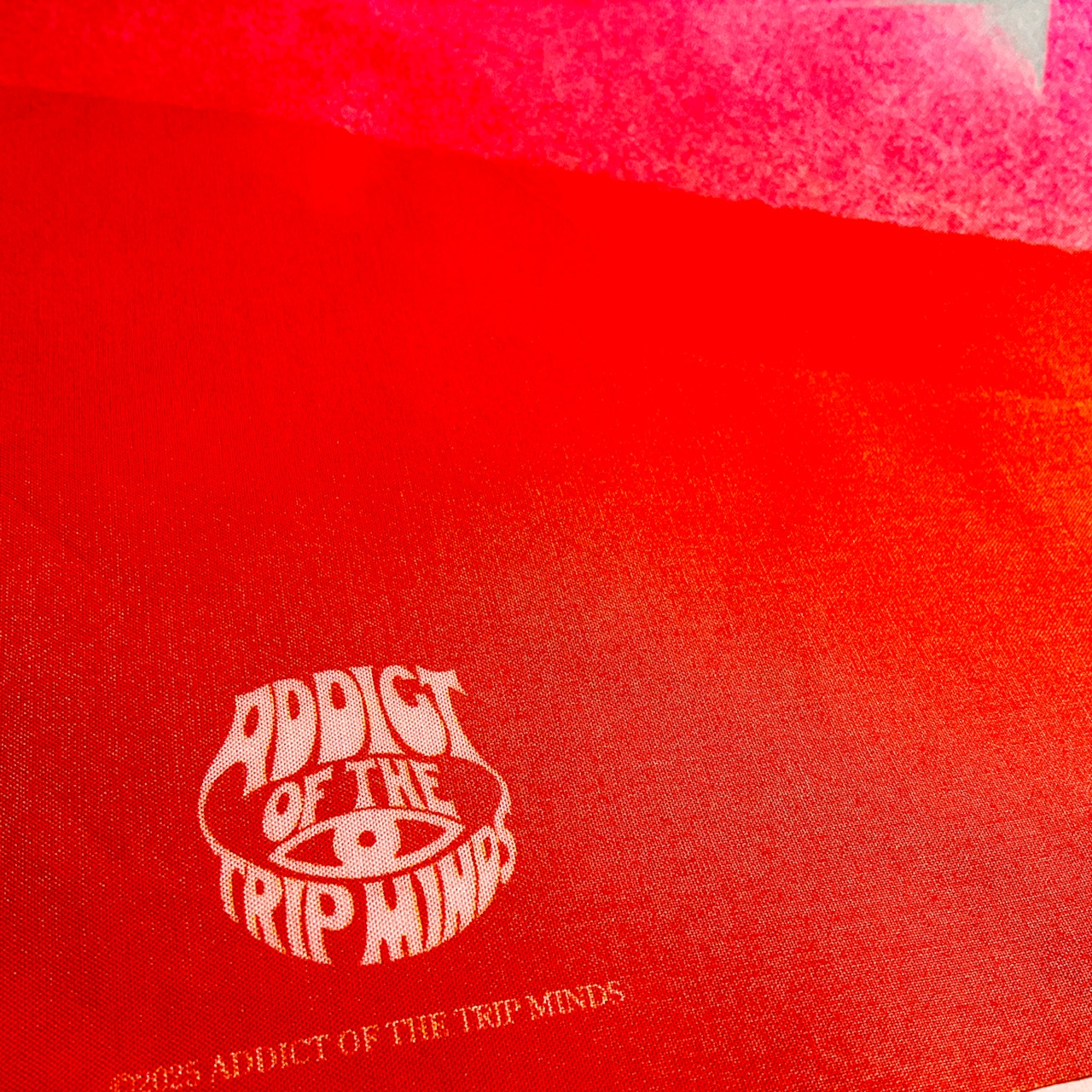 2025年5月、品川教会でのLIVEをイメージしたバンダナ。ピンクオレンジ系の配色。小さく日付とタイトルが入ります。
