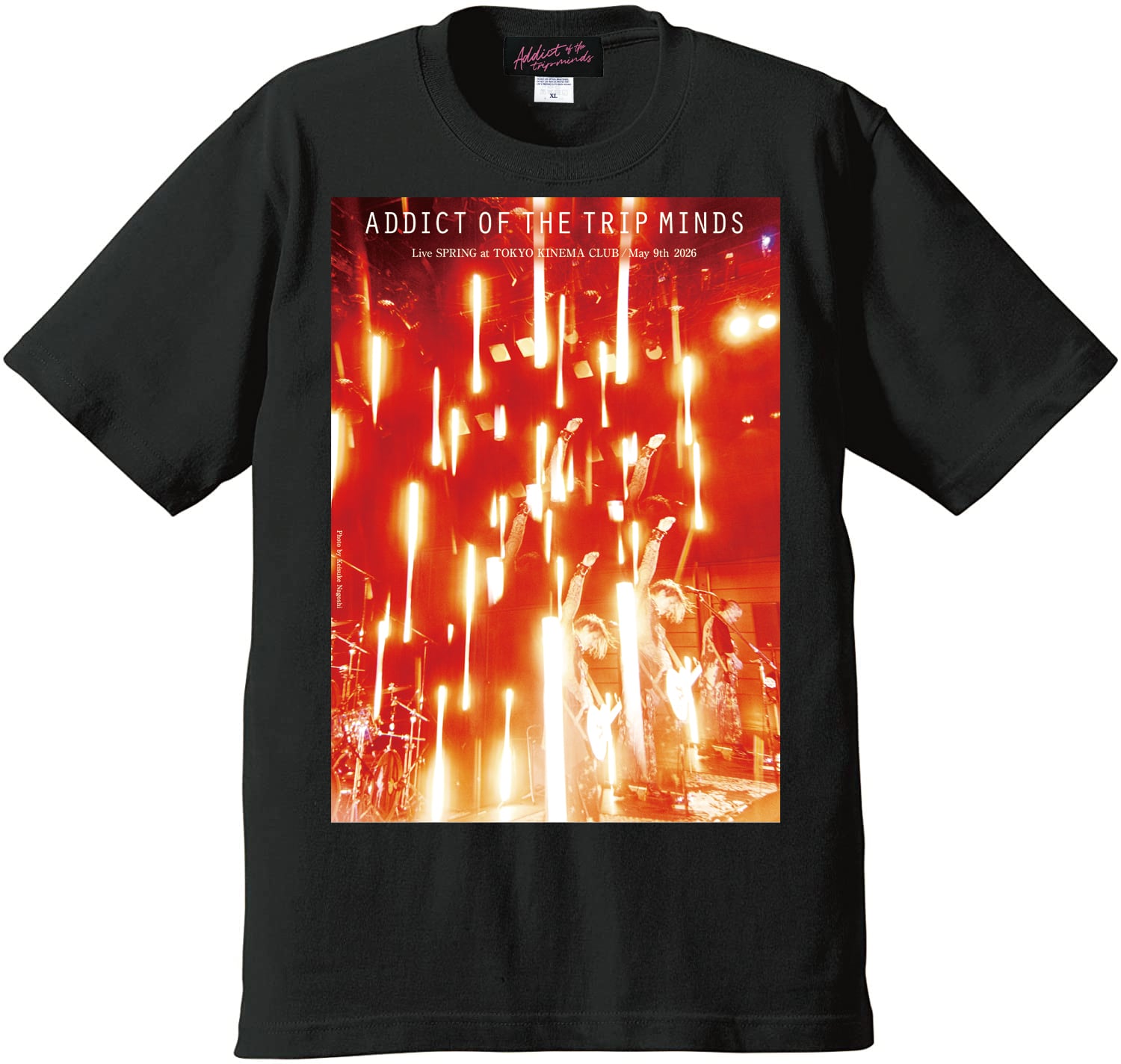 昨年10月の羽田TIAT SKY HALLライブからパワフルな瞬間をインクジェットでプリント。柔らかな風合いで着心地も良いです。新生ADDICTに期待大。Addictオリジナル・タグ付き。