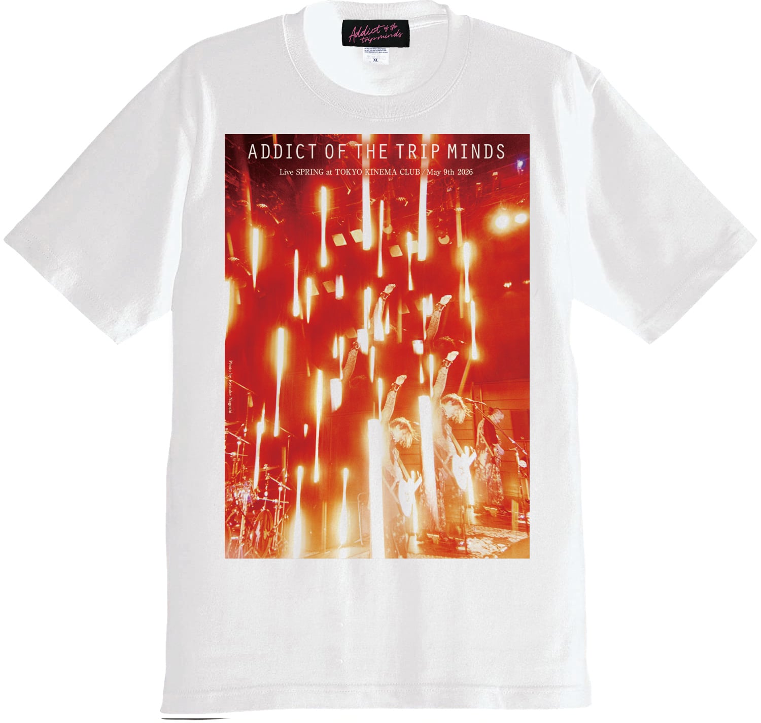 昨年10月の羽田TIAT SKY HALLライブからパワフルな瞬間をインクジェットでプリント。柔らかな風合いで着心地も良いです。新生ADDICTに期待大。Addictオリジナル・タグ付き。
